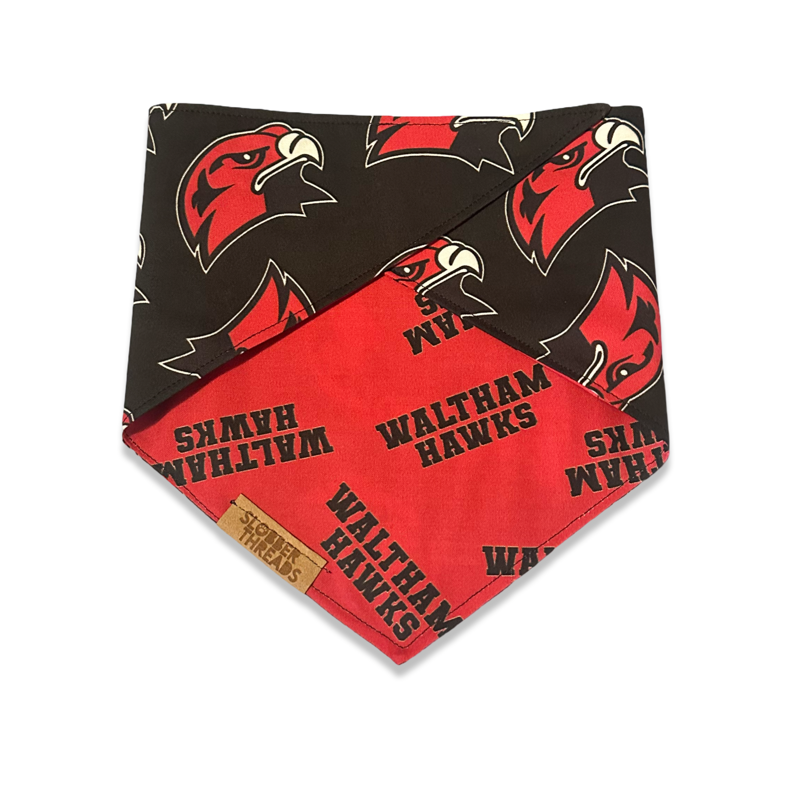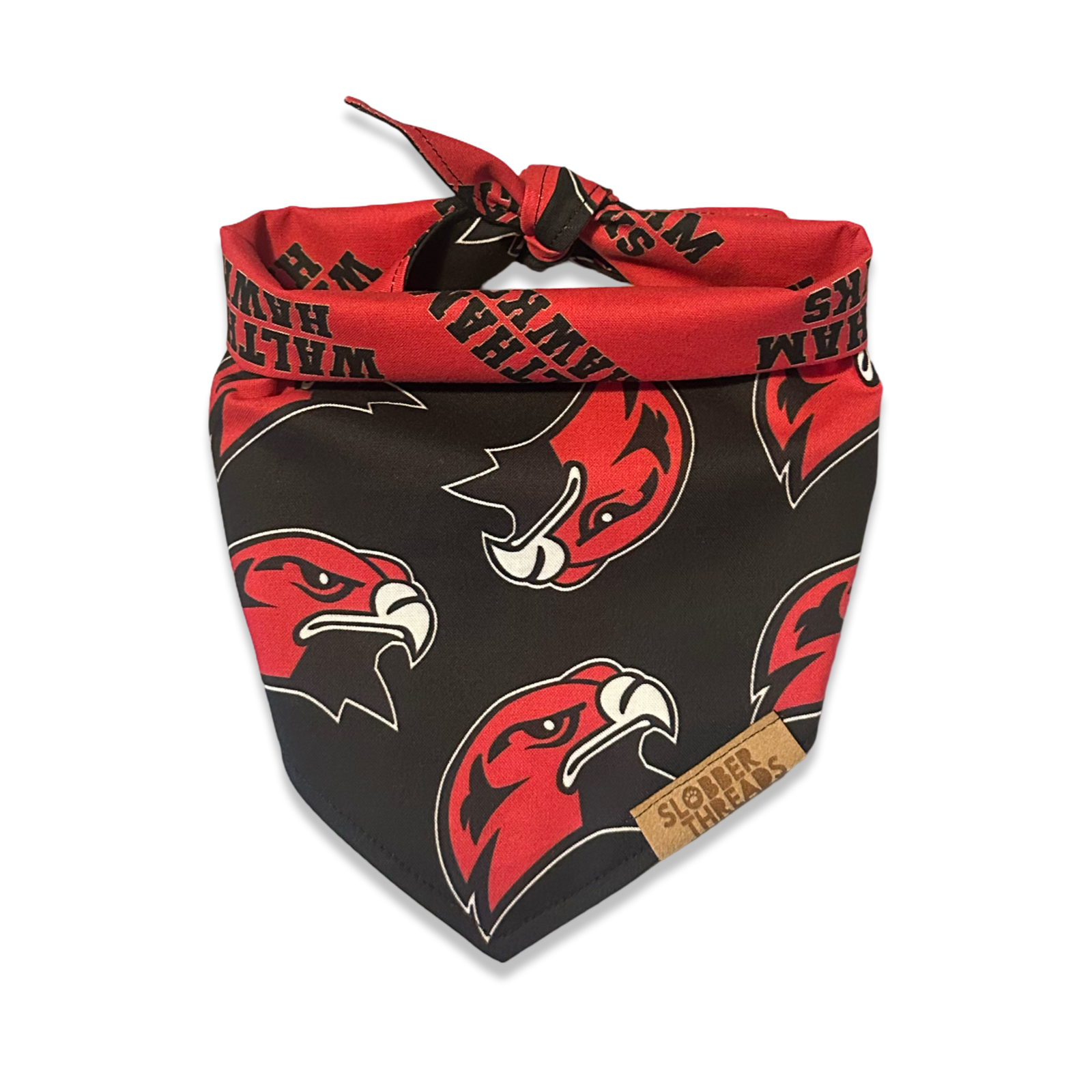 Show off your Waltham pride with our Waltham Hawks bandana — the perfect accessory for spirited pups and their humans! One side features the bold Hawks logo against a sleek black background, while the reverse side showcases “Waltham Hawks” in crisp lettering on a striking red backdrop. Whether you’re cheering from the sidelines or strolling through downtown, this bandana lets everyone know where your loyalty lies.