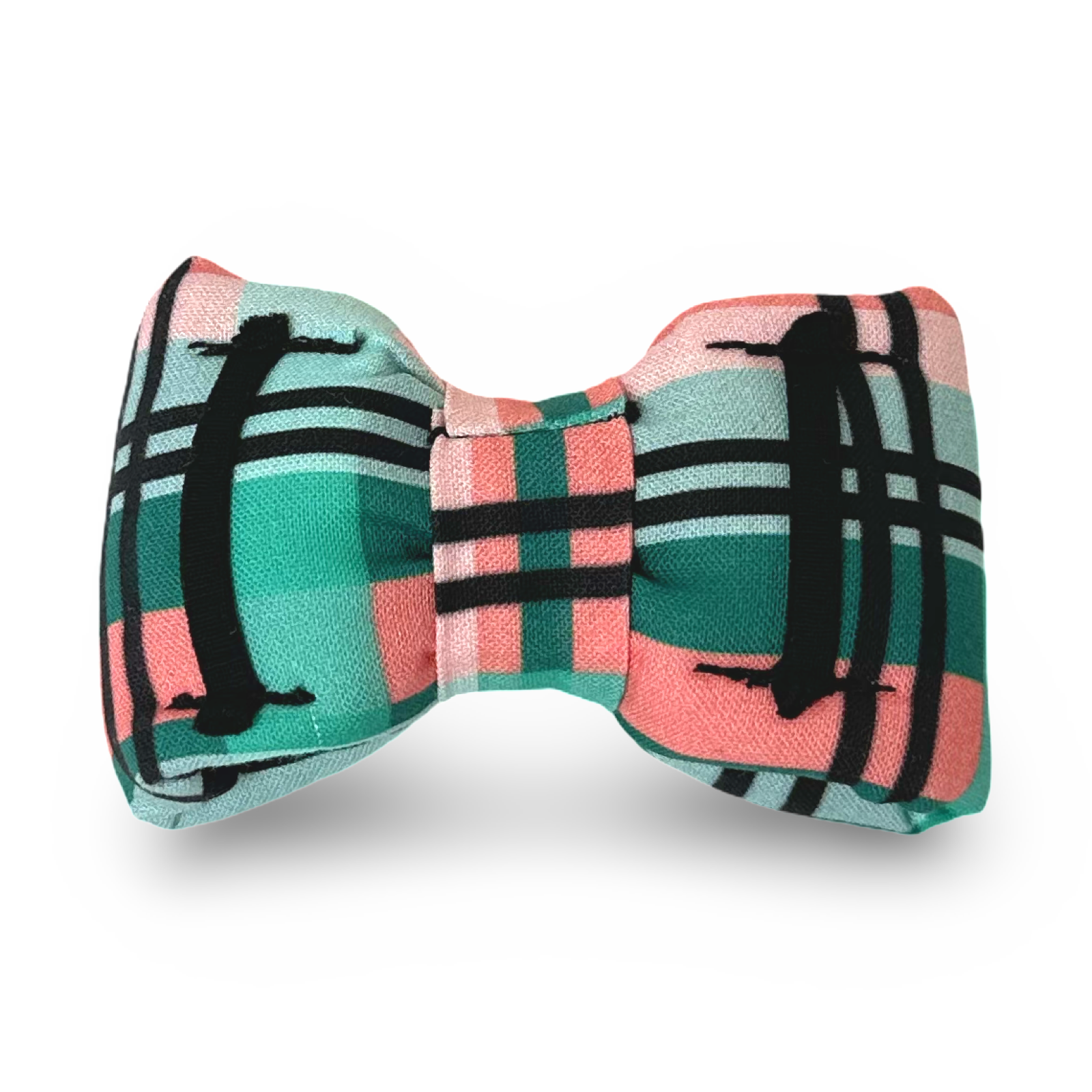 Step into the season with our Winter Wonderland Bowtie, featuring a whimsical plaid print in blues and pinks. This dreamy design captures the magic of winter days and frosty adventures, making it perfect for holiday photos or cozy cuddles by the fire. Puffy and structured, it keeps its shape beautifully, while the elastic backing allows it to slip easily onto your pup’s collar. Each bowtie is handmade with care, and slight variations in pattern placement make every one as unique and charming as your furry friend.