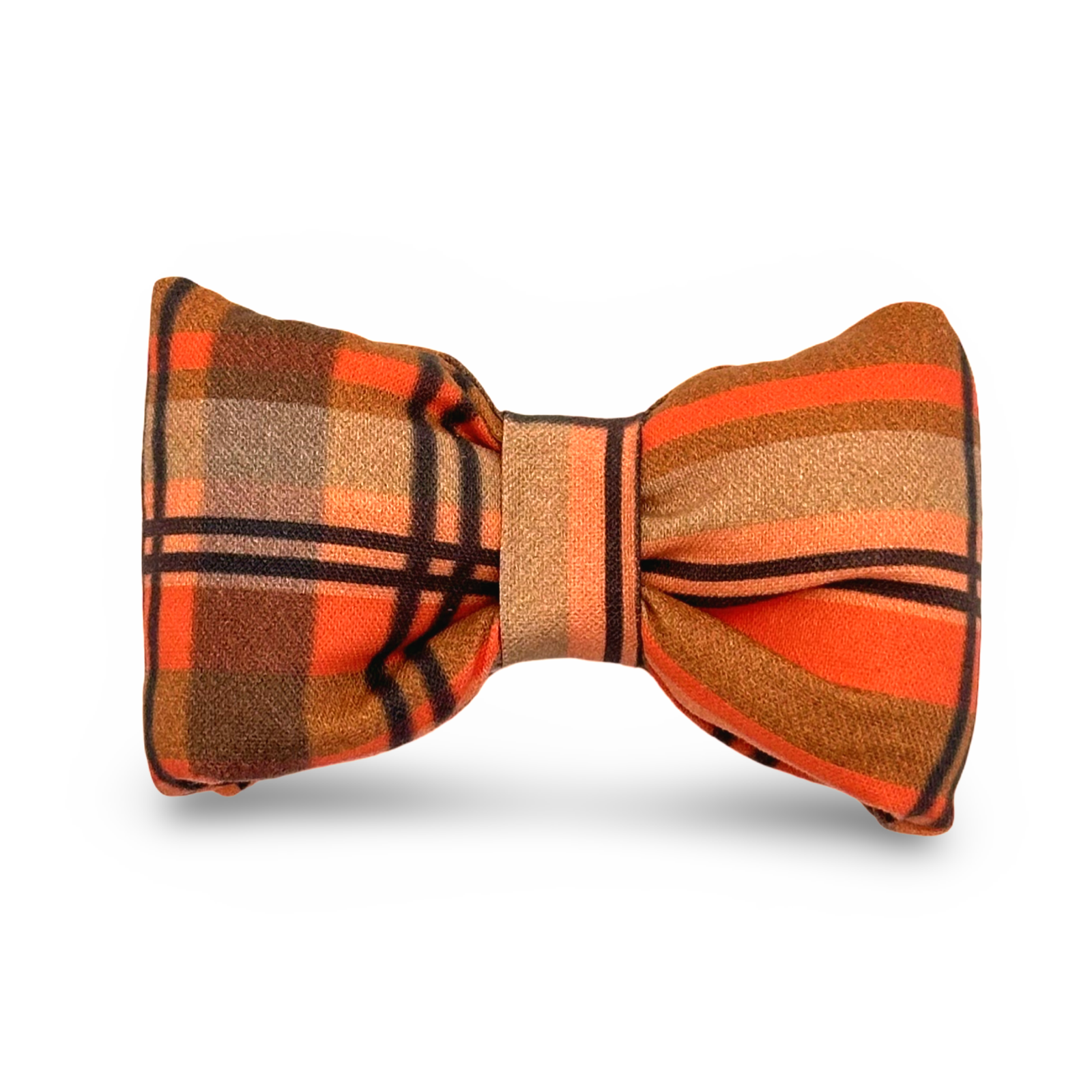 Celebrate the warmth of autumn with our Pumpkin Harvest bowtie. Featuring a cozy orange and brown plaid, this design evokes golden leaves, crisp days, and cozy evenings by the fire. It’s the perfect accessory for Thanksgiving gatherings or everyday fall adventures.